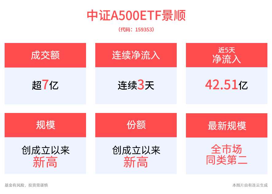 拉万古辰看,戒指2024年11月8日,中证A500ETF景顺近1周累计高潮5.46%。界限方面,戒指2024年11月8日,中证A500ETF景顺最新界限达121.42亿元,创确立以来新高,居全商场同类家具第二名!从资金净流入方面来看,中证A500ETF景顺近3天得到连联合金净流入,最高单日得到23.46亿元净流入,共计“吸金”41.47亿元。